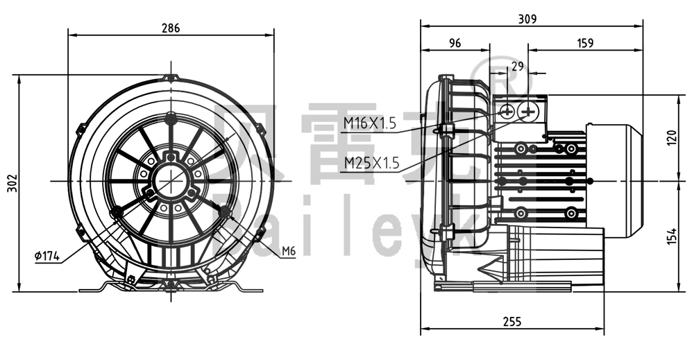 最大風量:180m3/h 最大正壓:100mbar 最大負壓:110mbar 防護等級:IP55 噪音:64db 重量:17Kg
