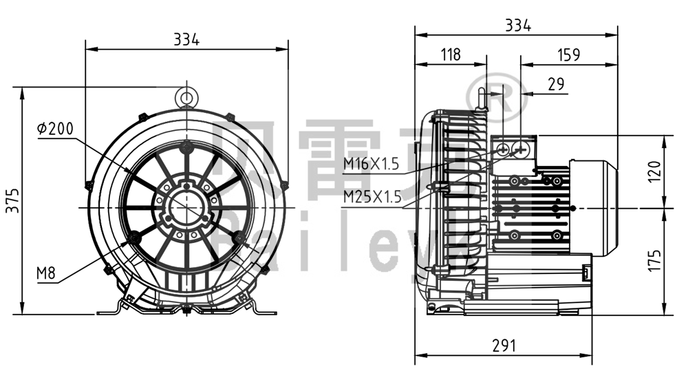 最大風(fēng)量:270m3/h 最大正壓:110mbar 最大負(fù)壓:120mbar 防護(hù)等級:IP55 噪音:65db 重量:23Kg